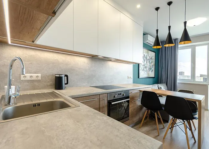 В 5-25 Beresteiskyi, Beresteiskyi 55A, Kyiv, Beresteiska Metro Nearby, Panoramic City View, 15 Kw Backup Power, Petrovdom Apartment есть патио, балкон и зона отдыха, а также такие удобства, как система климат-контроля. Насладитесь комфортом ванной комнаты апартаментов, которая оснащена феном и банными полотенцами. Кроме того, в ванной в распоряжении гостей отдельный туалет.